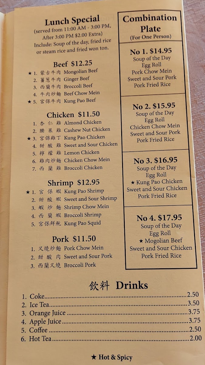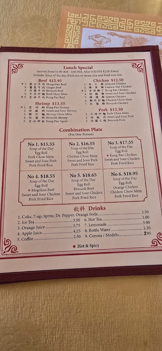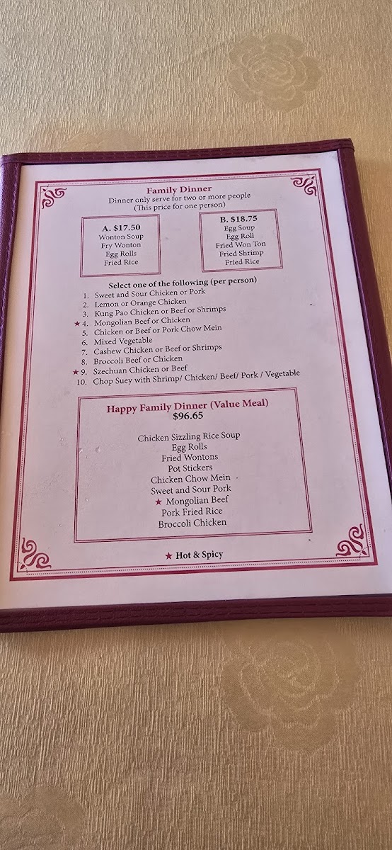 Light appetizers like fried wontons and pot stickers start the meal on a casual note, while chow mein and fried rice dishes offer familiar tastes with plenty of room for customization. There are also options for those looking for something a bit different, including vegetable and tofu dishes or special entrees featuring seafood or filet mignon with complementary sides. Sharing a fortune cookie at the end provides a small, classic touch to complete the experience.