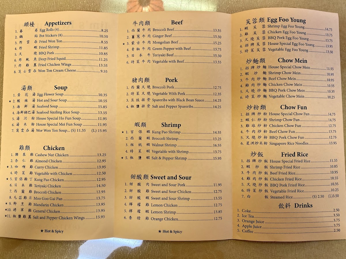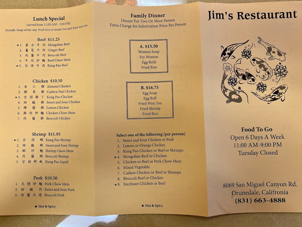 Jim’s Restaurant offers a straightforward and satisfying menu that reflects the comforting flavors of classic American Chinese cuisine. The selection is ideal for casual dining, whether you're dropping in for a quick lunch or enjoying a relaxed dinner with family or friends. Expect generous portions of familiar dishes like hot and sour soup, egg rolls, and the ever-popular orange chicken, alongside heartier options such as Mongolian beef and house special fried rice.